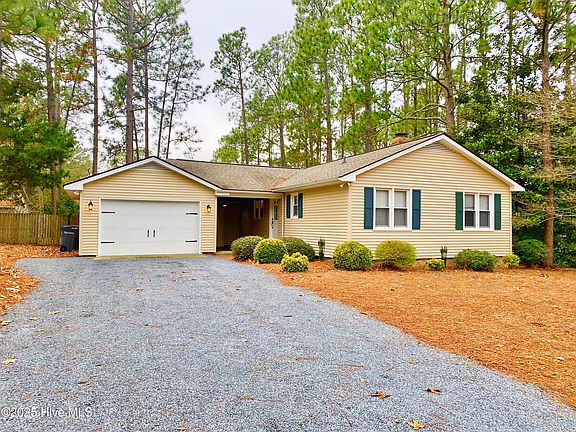 REMODELED: Smooth ceilings, granite countertops, huge basin kitchen sink, new hardware throughout, new light fixtures and recessed lighting throughout. NEW Washer / NEW dryer / and NEW microwave. Fridge included. Loads of cupboard and closet spaces. Wood burning fireplace. All new electrical outlets. Security lighting. Wood flooring. Fenced (4') back yard. Oversized single car garage with new epoxy floor. Covered front brick patio with lighted fan. Gardening and roof clearing service included. NEW A/C / heat system. LONG driveway to accommodate extra cars. Neighborhood in prime location and near: First Health Regional Hospital and medical complex, golfing, shopping, Villages of Pinehurst / Southern Pines / Aberdeen, miles of hiking trails, Reservoir Park, HORSE COUNTRY and much more! Pets okay with pet deposit. **FICO score of 700+ required** Available now. Owner holds active real estate license.