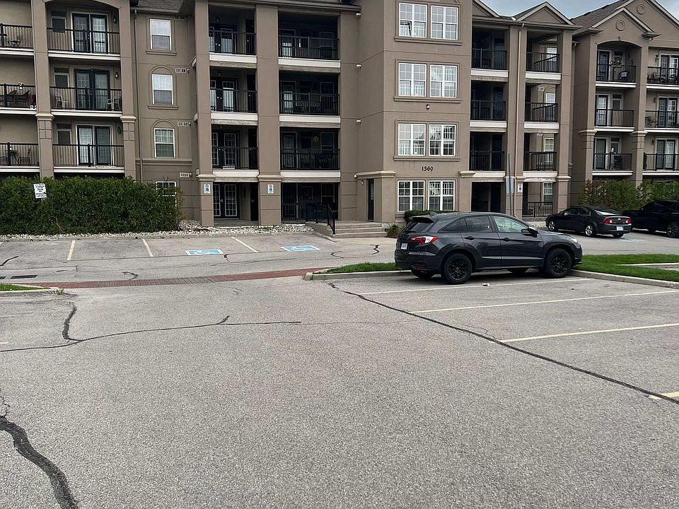 Absolutely Gorgeous, Highly Desired Top Floor, Two Bedroom Unit with Vaulted Ceilings. Rich Upgraded Maple Cabinetry plus Granite Counters with Breakfast Bar that Accent the Open Concept Kitchen Over-Looking the Bright Living Room with Cozy Wall Mounted Electric Fireplace and Walkout to Private Balcony. Distinctive Hand Scraped, Plank Style Upgraded Flooring Flows from the Living Room Through Two Very Spacious Bedrooms, Both with Large Windows. Beautiful Four Piece Washroom with Enclosed Laundry. Upgraded Ceramic Floor Through Kitchen and Bathroom. This Immaculate, Precisely Painted Home Boasts True Pride of Ownership. Very Economical with a Monthly Maintenance Fee of $414.73. One Underground Parking Space with Extra Surface Parking Available and One Locker. Access to Gym, Party/Meeting Room Conveniently Located in a Spacious Separate Building. You'll Love the Location Close to Shopping, Parks, Schools, Transit and Quick Highway Access.