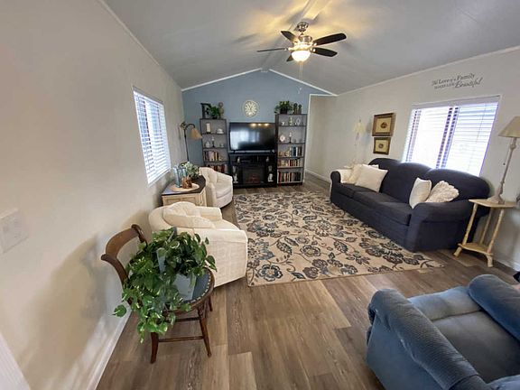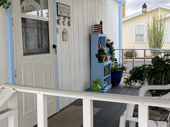 Cutest dollhouse in Paradise for you. Full or part time use. The pictures sells it immediately! It's just as beautiful inside. Remodeled & updated with light, bright and cheery colors. TWO storage sheds, EZ care yard including grape vines in back. Replaced central air system too. Designated 55+ age restricted community and ALL buyers MUST be approved by the HOA Board before offer is accepted.