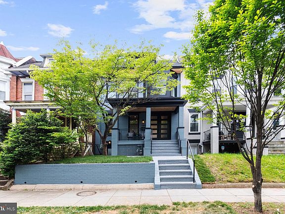 Incredible Renovation of Victorian Brownstone in Columbia Heights! This eight-bedroom six and one-half bathroom row home boasts 4000 sq ft of living space, off street parking for two cars, a roof deck and design expertise honed to create this bright and inviting home filled with open spaces and abundant natural light. The raised front entrance features a massive double door and covered front porch and separate lower-level entrance. The front living room greets you with a perfect balance of modern design keeping and accentuating original architectural features. Engineered hardwood floors and exposed brick walls make the space feel like a modern salon, with open concept spaces that lead to the dining area, a breakfast nook in the addition, and a gourmet kitchen. The kitchen features double floor to ceiling cabinets, quartz stone counters and backsplash, stainless Bosch appliances, insert gas stove, chimney hood and pasta filler. The dedicated dining area doubles as a second living space and leads to the rear Trex-deck. The Second floor features the primary bedroom, with ensuite marble shower, pedestal soaking tub, and double sink, with custom sliding glass shower door. The two additional bedrooms are serviced by an equally well-appointed hall bath and full-size stackable washer and dryer. The third level features a true den or salon with bar space, office alcove, additional bedroom and hall bath, and a multifunction front play-space or additional office or guest space. From here you access the roof deck with wood decking tiles. The lower level is a complete additional dwelling unit featuring a breakfast bar, two bedrooms, two baths separate front and rear access, and stackable washer and dryer. Basement floor is easy to maintain large format ceramic with additional storage spaces under the front portico and rear under porch air space. Two car parking and a commercial roll up door complete the reat space. All systems are new, plumbing supply and waste lines, 200-amp electrical service, double pane windows, and dual HVAC systems for comfort. New custom double thermal pane windows throughout. Material choices include natural stone and porcelain tile, and wide plank oak hardwoods throughout the home. Restaurants, bars, grocery and shops are literally footsteps away. Access to all of DC is minutes away while still providing an oasis of contemporary design and preserved architectural integrity. An amazing place to call home.