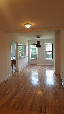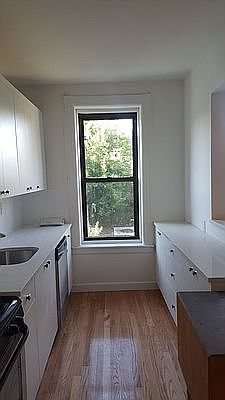 900+ sq. ft. gut renovated 2 bedroom/1 bath apartment with washer, dryer and dishwasher, stainless steel appliances. Top floor (2nd floor) of a 2-unit row house in booming Crown Heights located on a quiet tree-lined block. Featuring two skylights, stone counter tops with breakfast bar, custom cabinets, expansive living/dining room, hardwood floors and ample storage space. Large master bed with smaller second bedroom, ideal for an office or a child's room. Very bright with both North and South exposures. Heat and hot water included, tenants responsible for electric and gas. Short walk to the A/C/3/4 trains and B46 Select bus service. Conveniently located near the St-Johns recreation center and its indoor half Olympic swimming pool, Boys and Girls high school track, Blink Fitness gym, grocery stores and other shops. One month security deposit plus first month's rent required at lease signing. Income of 40x monthly rent, no guarantors. No pets and no smokers. $2,450 / month. No fee. Available June 15th or a few days prior for 1 year lease with option to renew. Open house on Wednesday May 25, 5PM - 8PM or text/email/call to schedule a time to visit.