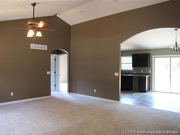 OPPORTUNITY to get in early on a beautiful all-brick new const by Payne Bros. TOUCHSTONE ENERGY CERTIFIED HOME w/upgraded closed cell insulation, upgraded water heater & HVAC units to ensure low utility costs. Utility bills even estimated & GUARENTEED by REMC! Early offers may select carpet color/customize features, LOCATION secluded CULDESAC in area of NICE homes. Covered porch & large patio w/deck in rear give views of woods/country, Archway between kitchen & living to separate yet still leaving an open feel, VAULTED ceilings & ARCHES, trey ceiling w/crown in Master, UNIQUE TILE in MR shower, custom kitchen w/tile backsplash, a PROPER laundry room (not a laundry closet), LARGE BR's for everyone. Oil rubbed BRONZE fixtures, STAMPED concrete, BULLNOSE CORNERS, NICHE & planned modern paint scheme, no plain vanilla in this home. Enjoy the FINISHED WALK-OUT w/ FULL BATH, LR& 4TH BR/office, 5 min to YMCA, hospital, shopping, One agent is related to seller, home has 3 BR septic.