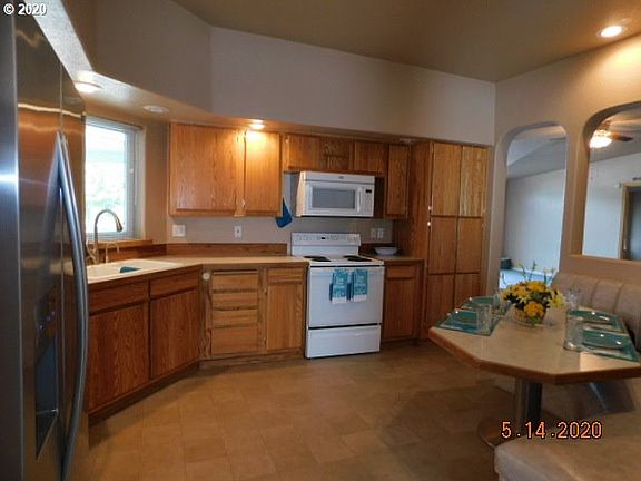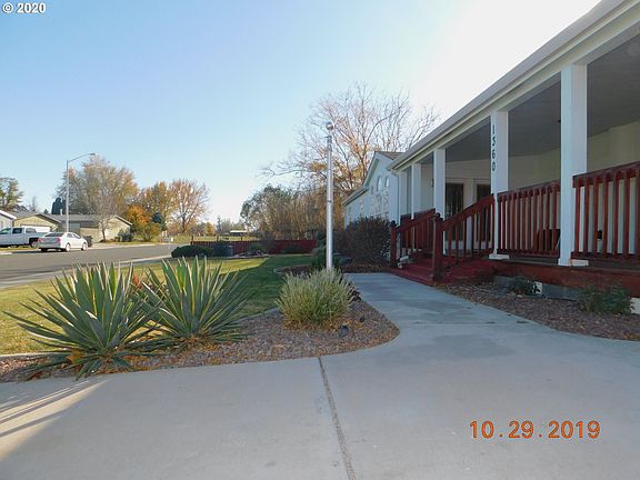 Beautifully landscaped front yard,leads into a huge covered porch as the entry in to this 3 bedroom 2 bath triple wide manufactured home situated on over a 1/3 acre parcel. Home is open and very spacious master suite has radiated heated floors, awesome walk-in closet.fully concreted covered patio off back ,detached over-sized 2 car garage, fully concreted driveway,RV parking space. kitchen appliances included.Newly painted interior looks amazing.Home is move in Ready!!!Call for a viewing today.