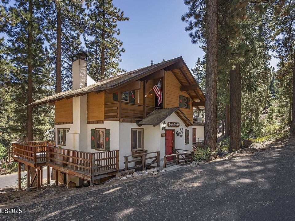 Bring your vision and unlock the potential of this ski chalet-inspired home, ideally located in the Tyrolian Village neighborhood of Incline Village, Lake Tahoe, with direct views of Diamond Peak Ski Resort. From the wraparound deck, you can watch skiers make their way down the mountain while enjoying the peaceful, forested surroundings maintained by the homeowners' association. Whether you're looking for a primary residence, a second home, or a vacation rental (short-term rentals are permitted here), this property offers an incredible investment and lifestyle opportunity. Inside, you'll find a functional layout with a downstairs bedroom and full bath, two additional bedrooms upstairs, plus a bonus office space not included in the bedroom count. The kitchen has already been beautifully remodeled with warm shaker-style cabinetry, modern hardware, and slab granite countertops. With a little elbow grease, the rest of the home could be transformed to match the charm of its alpine setting. The lower level features a spacious crawlspace with ample storage for all your ski and summer gear. Don't miss the chance to reimagine this mountain retreat into your dream property. Schedule your showing today and see the possibilities for yourself!