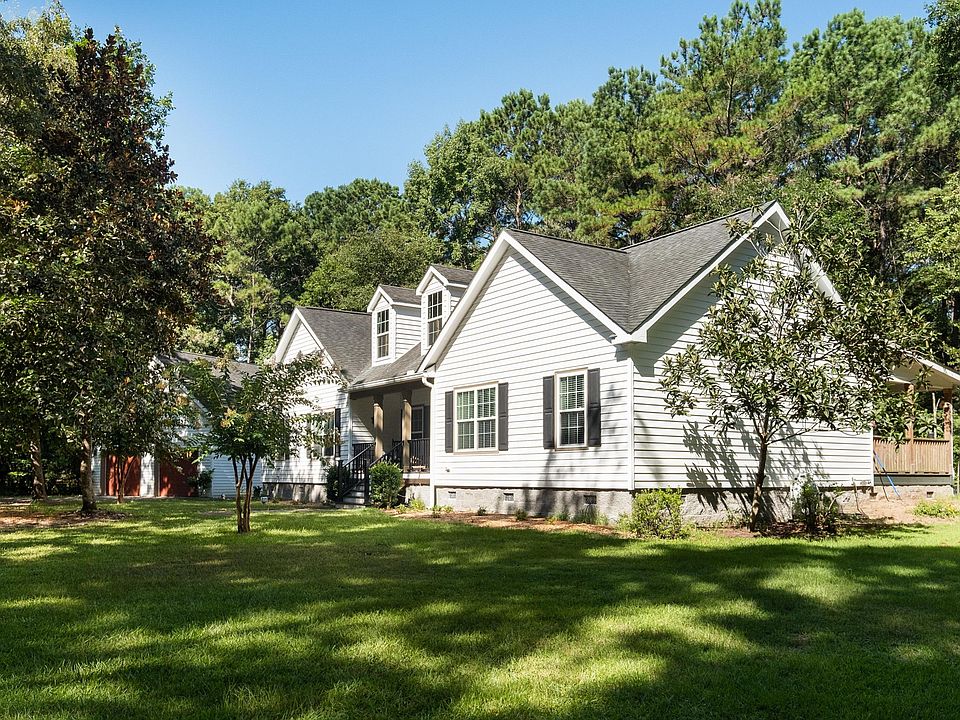 The kitchen flows nicely to the living room, dining room, and back deck. Make your way to the deck and take in the peaceful and quiet wooded surroundings. You can hunt from the deer stand on the property, take strolls through the woods, or simply sit on the deck and enjoy the wildlife that will come by. Your guests can enjoy the enormous finished room over the detached garage which also has its own full bathroom. This 700+ square foot room (which is included in the total square footage listed, but not included in the bedroom and bathroom count) is large enough for a king sized bed, living area, eat-in kitchenette, and more. The walk-up attic space in the main house could also be finished to create even more square footage in the main house if needed. Whippoorwill Farms is a community of only a few homes with large lots. It is a short drive to downtown, close to beaches, and just a few minutes to a nearby boat landing. The laid-back HOA allows you to use your property how you see fit. Subdividing lots is prohibited, so your privacy will always be intact.