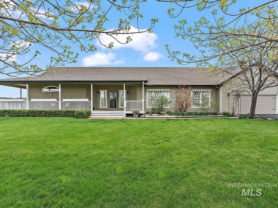 A treelined driveway welcomes you to this beautiful acreage property nestled atop a hill with panoramic views. Enjoy an incredible location between Dry Creek Ranch and Hidden Springs with NO HOA! Bring your hobby farm dreams to life with room to garden and raise animals! You will appreciate this single level floor plan with split bedroom design. The front office/den has custom built-ins and can be used as a 4th bedroom. The kitchen and dining space are the heart of this home and will foster memories to last a lifetime. The primary suite features a vaulted ceiling and sliding glass doors to the porch and side yard. The primary bathroom offers dual vanities, a large shower with 2 shower heads and bench seat. This property boasts a 22,000 gallon saltwater pool with automatic cover, pool shed and fence, a 36x48 shop with power and concrete floors, 2 storage sheds, a wraparound porch with planter boxes and drip lines, covered patio, mature trees, individual well and septic system. The epitome of HOME, is here!