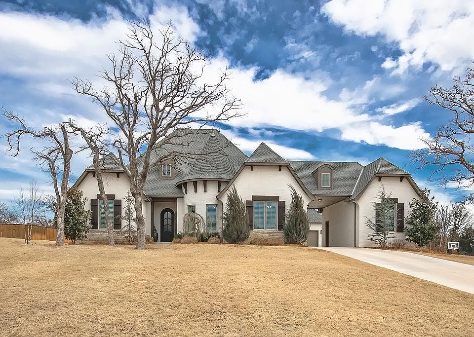 An impeccably maintained estate in gated Iron creek on .84 landscaped acres. Boasting an open floor plan, fantastic layout, and gorgeous finishes. Featuring 4 beds, 4 baths and dedicated office. This home is an entertainer's dream. A stunning living area with wood floors, built-ins and floor to ceiling rock fireplace. An additional 2 living areas upstairs, one featuring a wet bar and beverage fridge, the other perfect for a theatre room/flex space. The outdoor patio with fireplace and built-in grill is a grand outdoor oasis. Gourmet kitchen with double ovens, gas range, reverse osmosis and breakfast nook. An incredible dining room with show-stopper circular vaulted ceiling. Impressive owner's suite with large closet and built-ins, oversized vanity and walk-in shower. Sprinkler system on well, above ground storm shelter, and water softener. Custom features, luxury amenities and magnificent craftsmanship await. Located in Edmond schools with easy access to I-35, Edmond and downtown OKC.