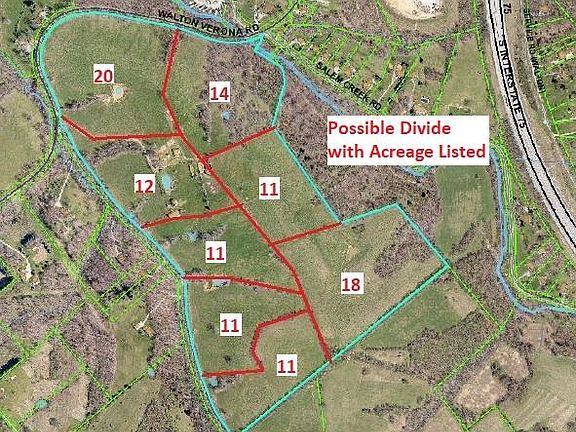 Approx 110 Acres Available in Boone County! Sellers May Consider Divide in Larger 10-20 Acre Tracts! Level to Rolling Land in the Walton School District! Over 5,200 Feet of Road Frontage on KY Hwy 14/16/WV Road & Vest Lane, Owen Electric, Public Water & Public Sewer Available! 2 Bedroom House, 3 Barns & Sheds, 5 Ponds, Beautifully Maintained Pastures! Development Opportunity Located Just 1 Mile from the I-75 Walton Exit!