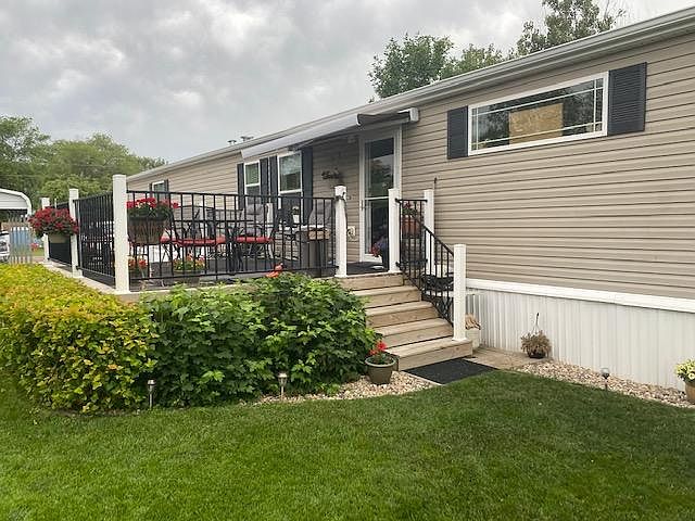 Immaculately kept mobile home presently located at ''The Meadows'' trailor court, lot #10. Lot rent is $240 per month which includes water, sewer, and garbage. Enjoy afternoons on the 14'X16' deck which has a retractable canopy for shade from the afternoon sun. Owners have developed a beautiful yard with lush green lawn, flowers, and evergreen trees creating a beautiful setting to enjoy while outside. Also included is a large 2 vehicle carport to protect your vehicles from sun and weather. The shed is owned by the trailor court but is for your use for additional storage. Includes WEB water and a well for watering. Yard has partial sprinkler system. This is a beautiful home with an attractive setting at a very affordable price.