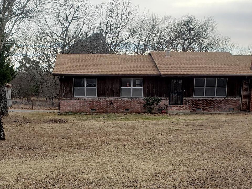 Large Brick house with 2 acres between The midway store and Woodall school. Woodall and Keys school district Fort Gibson bus stops at the store less than 1/2 mile east of house Large kitchen Shop/garage 24x 30 Attached carport with storage Den with fireplace fenced yard Central heat and air Refrigerator, gas range and dishwasher included 6 month lease 1,100 month includes water and trash 1,000 deposit