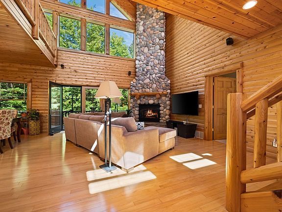 Be mesmerized by this stunning, Full Log Home situated perfectly on 4 acres of serenity in the highly sought after township of Empire Michigan! Built in 2003 featuring an open concept, windows everywhere, a sprawling loft area, 4 bedrooms, 3 full bathrooms, a completely finished walk out lower level, PLUS ample storage on all three floors. In addition, a HUGE 3 car garage with space for vehicles and toys.This open floor plan concept allowed for soaring ceilings, a floor to ceiling stone fireplace, with an elegant kitchen featuring granite counter tops and stainless steal appliances. The main level features a sizable primary on suite bedroom with a walk-in tile shower and an oversized soaking tub. This can be a great escape at the end of day! Simply open the windows and listen to the delightful sounds nature makes while you fall fast asleep. In the mornings and/or evenings you can sip your coffee, tea or hot coco on either the covered front porch or the expansive back deck taking in all the beautiful scenery of Northern Michigan. The main floor includes a primary on-suite bedroom, full guest bath and bedroom, and laundry with a window. Head up the full log steps to the second story loft that hosts a phenomenal cat walk overlooking the living room or head down to the large bedroom that could be a great HOME OFFICE featuring daylight windows and Fiber internet! The finished lower level features a completed family room, bedroom, full bathroom, walk in closet, and even a spacious workshop area with its own door. Also an added bonus is a whole home Generac Generator! Just a 10 min drive from the Sleeping Bear Dunes National Park, beaches of Lake Michigan, 15 mins to Platte River, & Glen Arbor and only 30 mins to Downtown Traverse City.