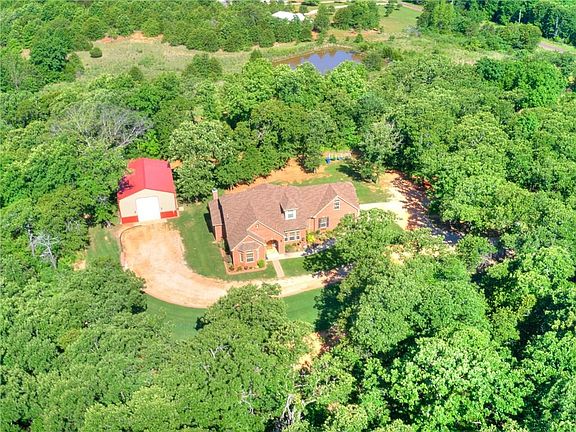 BACK ON MARKET! BUSTED DUE TO BUYER FINANCING! Wow! 5 wooded acres with a gorgeous custom home, gated entry, and 1200 sf insulated work shop with electric! The master suite, located on the main floor, has a safe room as the master closet, 2 bedrooms and a full bathroom upstairs, covered back patio, beautiful landscape and they just got fiber optics! Welcome Home!