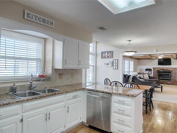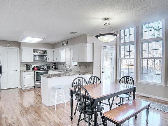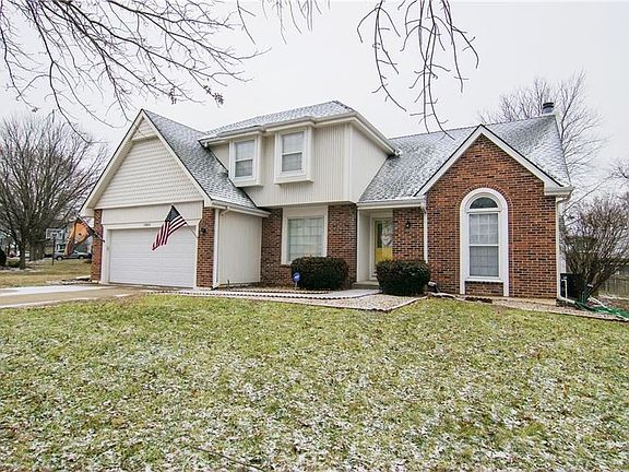 Charming 2 sty in popular Olathe East HS area*H/W foyer flanked by den & dining rm*Wide open great rm, breakfast & kitchen area*Grt rm boasts masonry FP, bookcases, coffered ceiling & wall of windows*Breakfast and kitchen feature hardwoods, granite & updated appliances*Laundry & 1/2 bath off kitchen*Large master bdrm w/two walk-in closets & private bath, double vanity & soaker tub*Spacious secondary bdrms*Finished lower level w/non-conforming 5th bdrm, rec room & 1/2 bath*New deck stain & newer int. paint!