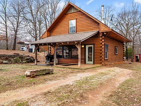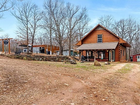 This charming log cabin sits on 25.48 acres of serene countryside, complete with a fully stocked pond and abundant wildlife—deer and turkey are regular visitors. The 3-bedroom, 1.5-bath home is beautifully constructed from solid logs and features a welcoming covered front porch, perfect for relaxing and taking in the peaceful views. The property is ideal for homesteading or hobby farming, with plenty of space for animals and several established raised garden beds ready for planting. Additional features include a metal shop, RV storage with 220-amp service, a utility building with electricity for wood or equipment storage, mature hardwoods, and scenic trails to explore.