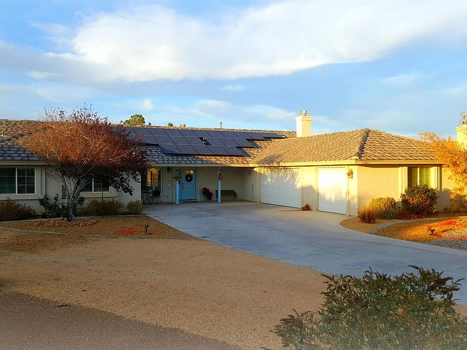 Beautiful Heated Pool & Spa home! This lovely home is in one of the most desirable areas of Apple Valley. You will enjoy raising your family and entertaining in this large and open floor plan home. The spacious master suite is on the east end of the house. This romantic suite has its own fireplace, a large bathroom with double sinks, a walk-in closet, and your own private sliding door into the pool and Spa. All the bedrooms are spacious and have ceiling fans and plenty of light. Cook your favorite meals in the large and elegant kitchen, which features plenty of food storage space and beautiful granite counters. The family/living area is a huge and open floor plan with plenty of light. You can watch the kids swim or play in the backyard from anywhere in this nice area, windows have elegant wood shutters. There is a nice wall to wall'' covered patio, RV parking, indoor laundry room, 3 car garage w/ workshop. Home is in cul-de-sac behind Rio Vista Middle School. Come check it out today!