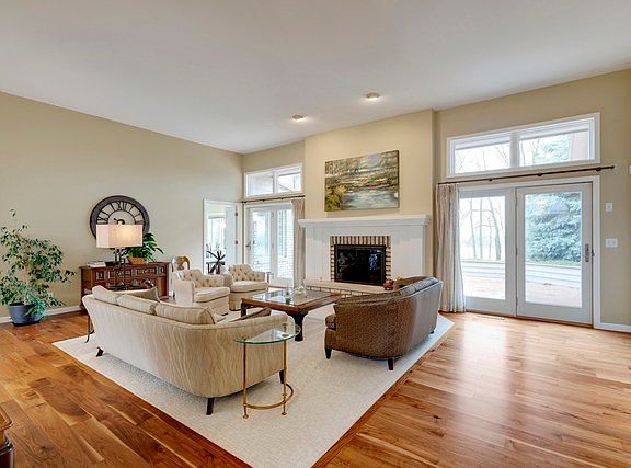 Gorgeous contemporary designed 3,022 sq. ft. split ranch, drenched with sun light from massive south facing windows, sky lights and French doors that over looks a 38' composite deck with no backyard neighbors! All brick home, hardwood floors, gas fireplace, courtyard entrance, 3 generous sized bedrooms, 2 bedrooms share a Jack 'n Jill bathroom with separate commodes, large office/flex room, master bath has heated floors, double sinks & frameless/walk-in shower, oversized 3 car garage, eat-in kitchen with sparkling white kitchen cabinets, granite countertops, professionally landscaping, mature trees, large laundry room features new washer & dryer (Nov. 2019), fold-down ironing board, brand new alarm system in place, unfinished basement has 2 furnaces with 2 zoned heating areas, located on a cul-de-sac on extremely high elevation lot with an expansive and spectacular view! This is an impressive one of a kind home! No HOA fees & Unit 5 schools.