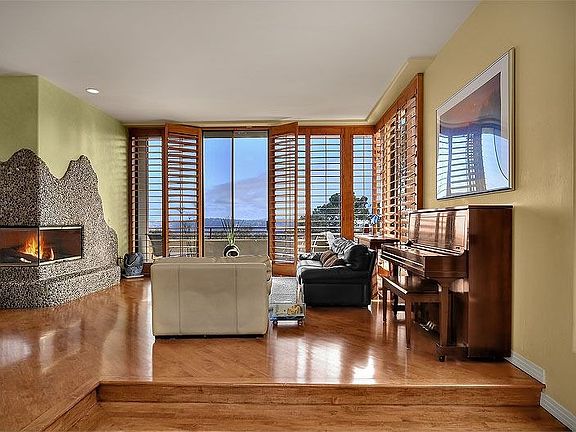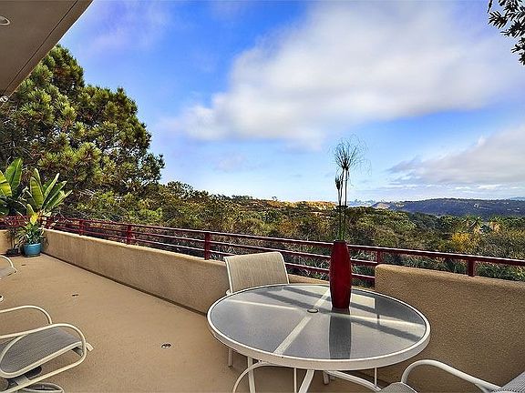 Outstanding custom designed home located at the end ofcul-de-sac adjacent to Torrey Pines Preserve. Step through thefront door entry and your magnificent view opens from the step-upliving room and dining room. Floor to ceiling glass windows withbeautiful wood shutters that open for unobstructed views. Theliving room and dining room features a designer dual sidedfireplace with polished beach stones. Gorgeous hardwood floors andlimestone entry. Enjoy your front and south side view balconies andrelax while gazing out to your the views of Torrey Pines Preserve,San Dieguito River Valley and filtered La Jolla Cove and ocean. Theback yard offers a small grass area and a large entertaining patiofor dining al fresco next to the stunning water features. A familyroom opens to the stainless steel appliances and black granitecounter tops and custom cabinetry in the kitchen. There is also abedroom, full bathroom and small office space on the main level.The dramatic upstairs level retains the open feel with views todown below as well as a master suite with the best views in thehome. The master bedroom takes up the the entire south wall of thehome and features a in suite bath with sunken ocean view bath tub,enormous separate dressing area with separate closets, a largebedroom with breathtaking views and decks, plus a large masterretreat (could be additional bedroom). Full bathroom and bedroom onthe upper level as well. The lower level of this home offers anextra deep two car garage with storage, very large bonus room/gym(could be divided into two rooms), a fourth bedroom, a fullbathroom, and the main laundry room. Call today!