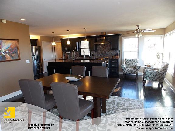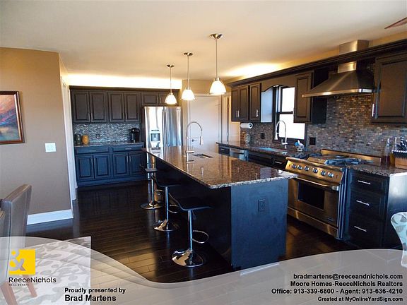 Show For Backup Status. Open House for 1/31 has been cancelled. Room to roam in this 3500+ square foot 1.5 Story! Open and bright floor plan offers wall-to-wall windows in the great room, main level laundry, office/dining room, and newly updated gourmet kitchen with all the upgrades: beautiful hardwood floors, huge island with 2nd sink, tons of cabinet and countertop space with granite countertops, stainless steel appliances, pantry, designer backsplash, gas range, sitting room, and breakfast room that walks out to the back yard deck! The main level master retreat offers vaulted ceilings, dual vanities, sauna shower, and custom walk-in closet! Upstairs are 3 spacious secondary bedrooms, cedar walk-in closet and 2nd full bath with dual vanities. The huge walk-out lower level makes the perfect 2nd living area or “man-cave” with 5th bedroom, 3rd full bath, recreation and media rooms, fireplace, and stone wet bar with built-ins and ceramic tile. Additional features include iron spindles, radon mitigation system, attic fan, new HVAC, sprinkler system, water softener, patio, lot that backs to greenspace, and both refrigerators stay. Olathe East schools! Better hurry! Please call for your private tour today!