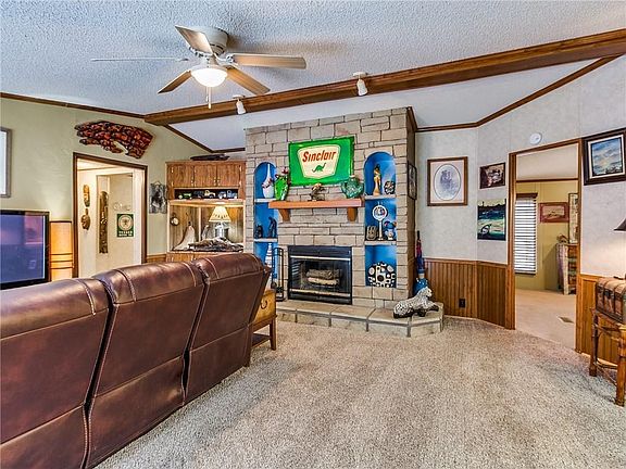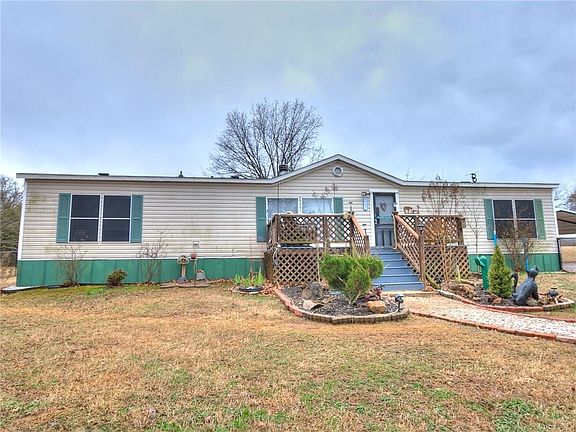 This home has the quiet qualities of country living with conveniences of being in town! It's just a couple miles from Grove School. Your new home is so well cared for, you'll feel confident living here comfortably for years to come. It's on a couple acres--some fenced--just east of Shawnee, overlooking the neighbor's scenic pond. You only have a few neighbors just beyond a stone's throw but close enough that everyone looks after each other. The wood deck on the east entrance leads in to the front of the home while the rear deck is shaded by a nice wood storage building. The great room has an island kitchen keeping the cook a part of the action. You'll love having a wood-burning fireplace to warm up cold evenings. The master bedroom opens up to a large en suite bathroom with relaxing jetted tub! The air conditioner is so new you'll not even know when August comes around! There's so much to love in this home. Have your agent take you out here ASAP before someone else snatches it up!