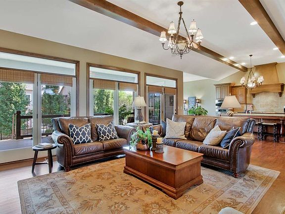 You will fall in love with this beautiful, upscale, former model home in the Hawthorne neighborhood. This executive style brick home has a 5-star energy rating and was built by Nies with extreme upgrades such as blue wood, double electric water heaters, energy efficient appliances, and high end Anderson windows. As you enter through the grand foyer, youll love the open living room & kitchen which is a stunning layout. Some details youll notice are the gorgeous wood floors, the exquisite wood beams on the ceiling, the elegant chandeliers, the dramatic stone fireplace with gas logs, 5 baseboards & trim, high ceilings, and an abundance of light with the wall of doors & windows. The kitchen, a chefs dream, is centered around an almost 5 foot by 8 foot exotic granite island with a huge, deep sink. Upscale stainless appliances including a gas stove and double ovens, one which is a GE profile Advantium convection oven / microwave with a speed cook feature, will be sure to please. Dont miss the stunning kitchen cabinetry with soft shut drawers, lots of pull out shelves and a special drawer for utensils and spices. A built-in desk and built-in hutch are also wonderful additions. The grand formal dining room is just off the kitchen as well as a hallway that leads to the walk in pantry, the upgraded ½ bath with a beautiful copper sink and the large separate laundry room. Access to the 3 car garage is also off this hallway. Another perk about this main level is the private masters quarters with a full ensuite, double sinks, tile shower, soaker tub with travertine tile throughout, as well as his and hers closets and a large bedroom with its own access to the covered deck. It's a welcome retreat. But down the other corridor on the main level youll find 2 spare bedrooms and another full bathroom. This layout is perfect for kids or guests to be close but have their separate area. And this is just the main floor. The full walk-out basement is ideal. The huge wet bar is a great spot to center around while entertaining, complete with a full dishwasher, microwave & room for a small fridge. Another gas fireplace with a stone surround is a focal point in the basement. Talk about a cozy and comfortable space! A separate finished room was originally designed to be finished off as a wine room, but was used for musical instruments and could be a great option for an office or playroom. Two more bedrooms with large walk-in closets and another hallway bathroom are in the back wing of the basement. There is no lack of storage here in the L-shaped gigantic storage room. You could finish off another portion of the storage room for a media room or game room, you name it. The walk out basement leads to a spacious finished patio. The yard is fully fenced with a sprinkler system and irrigation well and freshly landscaped with a row of trees to add privacy. Youll also enjoy the huge covered deck, another excellent spot for entertaining. The 3 car side load garage and large driveway are highlights of this home. The driveway is a great space for a mini basketball court. The beautiful exterior and professionally landscaped yard and front porch will captivate you the moment you arrive. The Hawthorne neighborhood has many attributes including multiple fishing ponds, a gorgeous pool & lots of walking & biking paths. It is within the award winning Andover school district but there are lots of other opportunities within walking distance for schools such as Trinity Christian School and Magdalen Catholic School. This is a fantastic location as youre near the 96 highway, close to tons of shopping, medical, and other amenities.