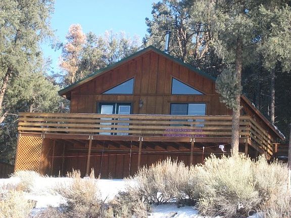 Beautiful Custom Home built by Local Contractor Gordon Construction. Attention to detail everywhere in this One Level 2 Bedroom , 2 Full Bathrooms. Tile Entry and Kitchen, also laminate flooring in greatroom and around Used Brick Hearth for Woodburning Stove. Wraparound Deck from Entry around to other side of home. Fantastic Views from all rooms especially from the front Deck. Has Hunter Green Metal Roof because we are in a national forest.Gorgeous Redwood T&G Ceiling for the real Rustic Cabin Look. Full size Walk-in Shower in Master Bathroom. There is under Home Storage, Built-in Bookcases, Ceiling Fans in Bedrooms, Propane Cooking Stove. Home also has a newer Tankless Water Heater System and Water Softener. You must come and see this special Custom Home. Really important to not let Cats out side, please keep front door closed.