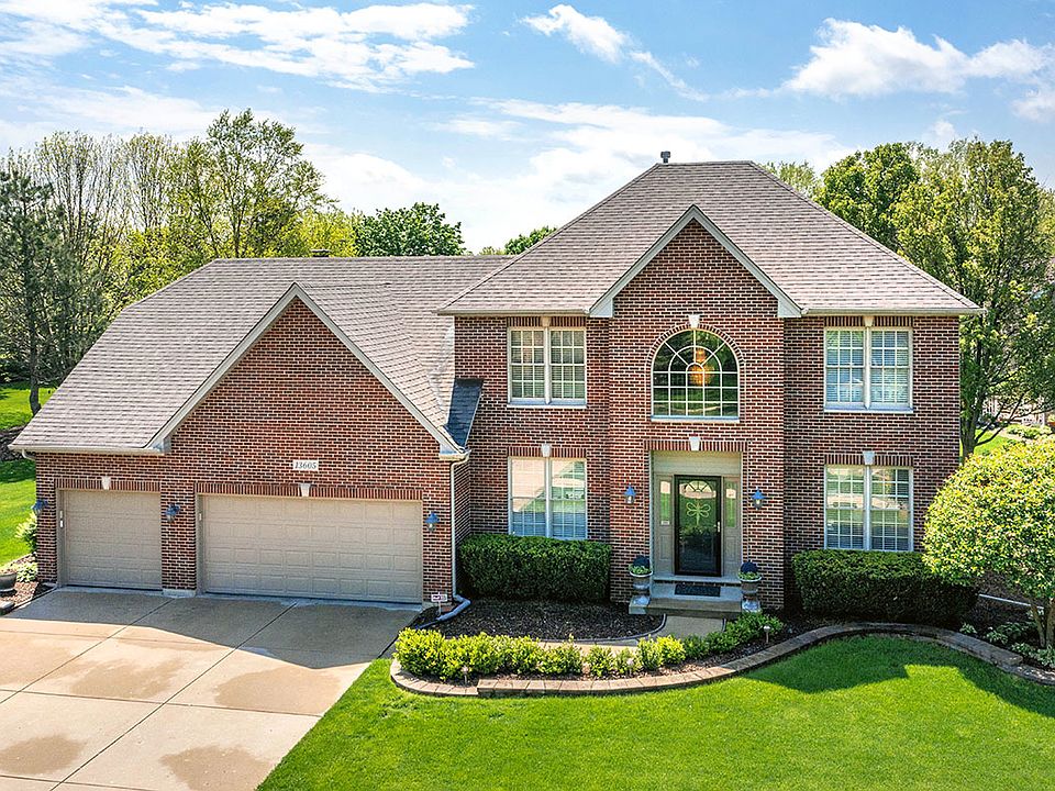 Stunning Brick Front Former Model Home on Large Lot in Sought After NE Plainfield's River Ridge Subdivision. Impeccable landscape greets you as you approach. White Trim, doors and millwork detail throughout the home. Spacious Formal living and Dining Room. Private Den/Office with French Doors. Large combined Kitchen, Eating Area and Family Room perfect for family time. Family Room boasts vaulted ceiling and beautiful brick fireplace and bay window. Kitchen has Island, granite counters, SS appliances too. First Floor Laundry Room with utility sink. Second floor has 4 good sized bedrooms and 2 full baths. The Primary Bedroom has 2 spacious closets and a large bathroom with whirlpool tub, dual vanity, linen closet and separate shower. Second Bedroom has a double closet. Third and Fourth Bedrooms are light and bright with nice closets! The hall bath has two sinks and lots of space. 3 Plus Car garage with cabinets and work bench and extra insulation added above garage. Professionally Landscaped large corner lot with beautiful deck, patio, pergola, built in gas grill! Partial basement with crawl, Extra lights, outlets, active radon mitigation system.
