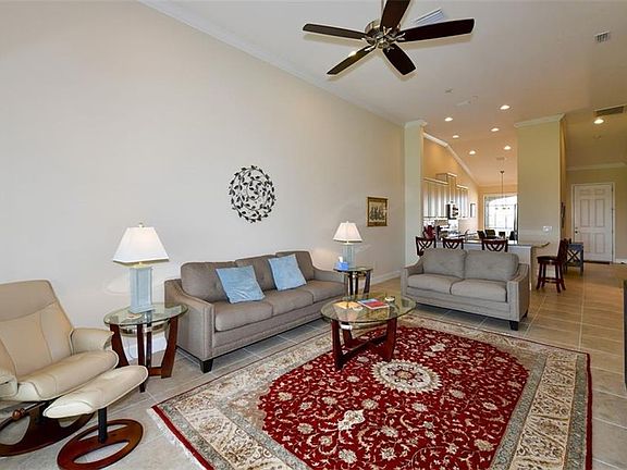 SELLER says sell it now. Turnkey furnished unit open plan condo with 12 ft. ceilings overlooks the third hole on the golf course and large lake. The main bedroom is light and bright, has two walk-in closets and a spacious bathroom with a granite vanity & full shower. The 2nd bedroom, 2nd bath & full utility room with appliances included finish off this terrific condo. The home is perfect for a second home, monthly rental or a fulltime resident. Covered parking, guest parking and enclosed storage space is just below. The Bacciano area has its own private pool with grills. This is a FULL GOLF MEMBERSHIP condo offering 18-hole championship golf course, heated lagoon style pool, resistance pool, activities director, wellness center, clubhouse, fitness center, tennis, pickle & bocce ball courts, fire pit, dining, full social and fitness calendar. Stop by and view the New Culinary Center with fine dining and a bar. Esplanade Golf and Country Club is just minutes from I-75, shopping, dining, entertainment and the University Town Center Mall.