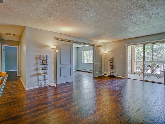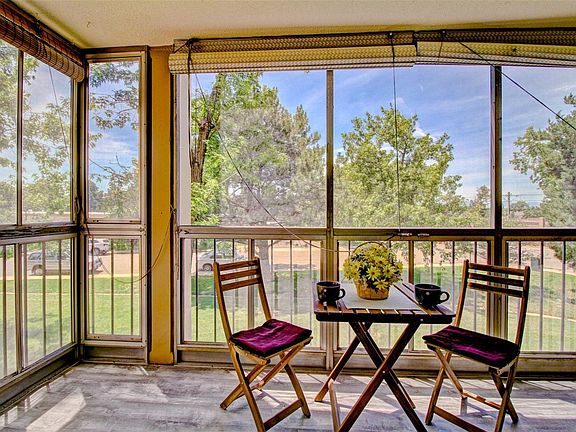 Beautiful 2 bed/ 2 bath condo in Heather Gardens! This open floor plan unit has been completely remodeled with contemporary barn doors, new laminate flooring and tile throughout, new cabinets with granite and marble counters, and new stainless steel appliances. The lanai is fully enclosed with windows and screens and is finished with low maintenance vinyl tile. This unit has one covered parking spot with cowboy storage and an additional storage unit inside the building. This complex is one of the best 55+ communities in the metro area! The community features a $10M clubhouse, restaurants, fitness center, craft classes, dance, indoor and outdoor pools, golf course, billiards room, a pond, tennis courts only a hundred yards away! Easy access to I-225, and the light rail is nearby. Note that the sliding patio doors will be replaced at the owners expense prior to closing in accordance with HOA rules.