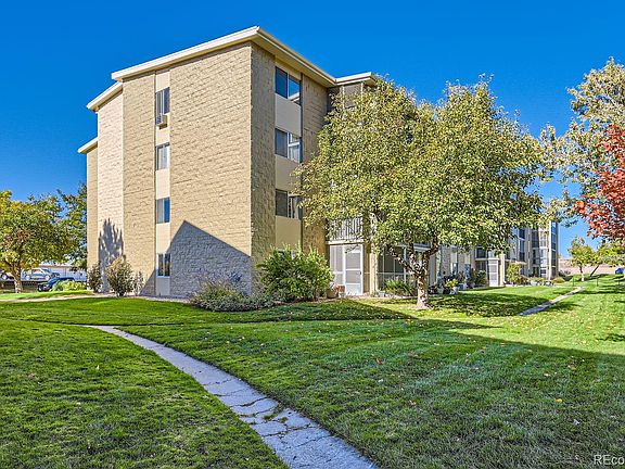 Spacious 2 bed 1 bath main level end unit with enclosed lanai and door that leads to a grassy area, perfect for dog owners. The kitchen has been updated and includes a two-sided pantry and eating area that flows into a large living room space. The main bedroom is large enough for a king-size bed and includes a long closet with plenty of space. A secondary bedroom includes an additional end unit window. The bathroom has been remodeled with a walk-in shower. Conveniently located steps away from the Clubhouse, Restaurant, gym, pool, sauna, hot tub, with many more amenities. This 55+ community is surrounded by a wildlife preserve, golf course and Cherry Creek Reservoir is a short walk or bike ride away. There are water features throughout the community, tennis and pickleball courts, ping pong, billiards, a huge woodshop, auditorium and classes and events all year long. Located near shopping, light rail, and restaurants. Heather Gardens is more than a community, it's a lifestyle.