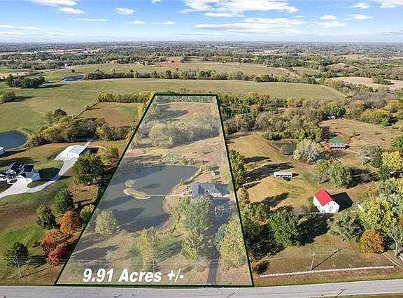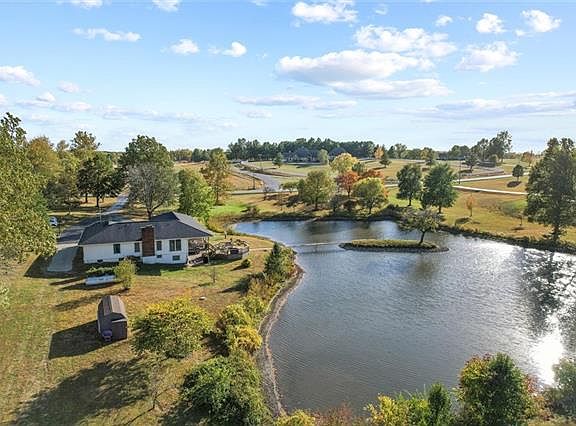 Back on Market! Beautifully renovated ranch on 9.9+/- acres in the Kearney School District. 3 bedrooms with 2 full bathrooms and 1 half bath on main level. 2 non-conforming large bedrooms (both have walk-in closets) with 1 full bathroom and 1 half bath in the finished walk-out basement. Complete main level renovation in 2018 including custom kitchen cabinets, granite, and all new appliances. Updated owner’s suite with walk-in tile shower and custom double vanity plus expansive walk-in closet. New flooring throughout entire home! Modern Farmhouse feel with fabulous view of fully stocked pond with a bridge to your very own island. Gravel drive through the tree line to access back half of property to enjoy your side-by-side or dirt bike riding. Great location just 5 minutes to Kearney and I-35. Owner/Agent