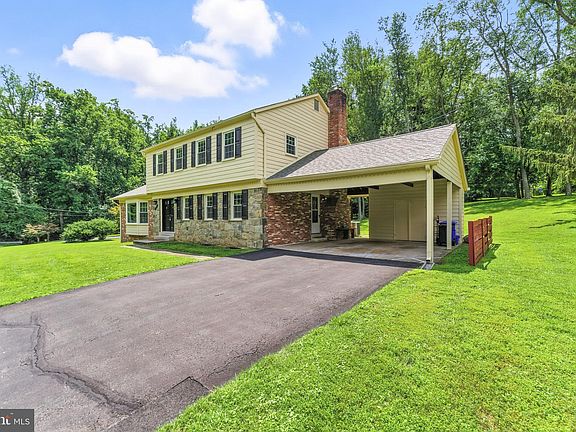 Classic stone-front Colonial on gorgeous private lot on quiet dead-end street in beautiful Drumeldra Hills! Spacious formal living and dining rooms with hardwood floors are flooded with natural light, convenient first-floor office/bedroom with adjacent half bath and large kitchen/breakfast room opens to the warm & inviting family room with stone hearth wood-burning fireplace! Top level features four bedrooms with hardwood floors and generous closet space and two full baths including the primary suite with private bath and walk-in closet. Full lower level includes a large finished family room/rec room area with side exit and huge workshop/storage/laundry area. Two-car carport with built-in shed and loads of off-street parking. Recent updates include double-pane windows throughout, architectural shingle roof and electrical heavy-up! This home represents a real value in a beautiful private setting - don't miss it!