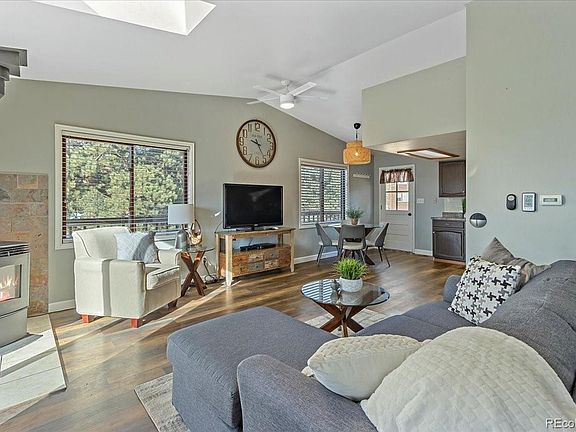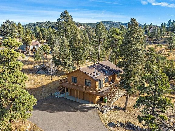 A mountain home on a corner lot in a peaceful setting with mountain views? Yes, please! This home is private, yet not isolated. The wrap around deck invites you to take a moment to appreciate nature. Soaring pines, colorful skies, wildflowers, quaking aspens, serene snowflakes, deer tiptoeing through the grass with fawns - every season brings another reason to love Colorado. This home features vaulted ceilings and open floor plan allowing for plenty of natural light and a sense of space. The eat-in kitchen is roomy with lots of storage. The living room features a pellet stove that can heat the entire upper floor. The lower level walk-out opens into a fenced play yard for your pets. The garage is vented for warmth. The third bedroom on the lower level is currently being used as a home office. The yard features beautiful rock outcroppings, level usable space, as well a gentle slope. Everything about this home is quintessential Colorado living.