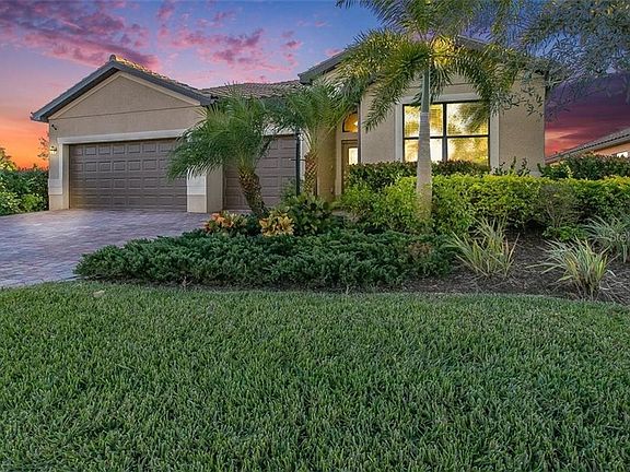 One or more photos has/have been virtually staged. This beautiful Tivoli home by Lennar is an absolute must see! This ever popular model has loads of space and the open concept floor plan perfect for a relaxed Florida lifestyle! This 4 bed/3bath homes comes complete with 3 car garage, oversized breakfast nook, island seating and screened lanai that offers views of an expansive back yard, which is completely fenced, and the beautiful colors of the sunset sky. Solid wood cabinets, gleaming granite counter tops, stainless appliances and large panty closet all compliment this oversized kitchen. In addition, the 4th bedroom is an en-suite and so provides plenty of privacy for guests, AND, the formal dining room can easily be converted into office, den or flex space. The Savanna community offers an amenities center with indoor and outdoor areas, fitness room, pool, dog park, playground and gated entry. Low HOA fees, beautifully manicured grounds, A-rated schools, short driving distances to sunny, sandy beaches, beautiful commerce areas for shopping and ding a even a premium outlet mall, all make this the perfect location for your new home!!