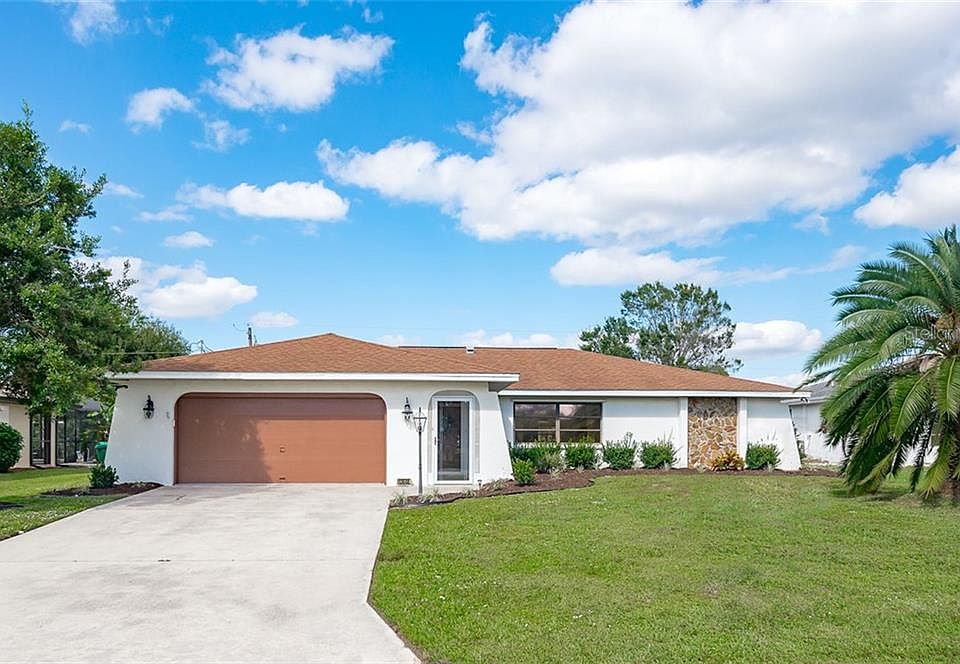 MOVE-IN READY! Whether you enjoy entertaining or want to peacefully enjoy your home with friends and family, you will appreciate the many recent updates from NEW PAINT, NEW CARPET in bedrooms, NEW LAMINATE FLOORING in living & dining room, NEW MARBLE LOOK TILE in kitchen & remodeled bathrooms, a NEW SEPTIC TANK and NEW WHOLE HOME GUTTERS AND DOWNSPOUTS! A screened in entryway leads you to the front door which opens into a bright and cheery living room flooded with light from a large picture window. Around the corner and at the heart of the home is an incredible KITCHEN WITH SPECTACULAR CHERRY SOLID-WOOD, CUSTOM CABINETRY overlooking the dining area and sitting room. There is an immense amount of counter space for prepping, displaying and eating with family and friends which would be perfect for holidays or dinner parties. The guest bedrooms are located down a separate hall of the home from the master for privacy and both bathrooms have been recently upgraded with LARGE MARBLE-LOOK TILE. One thing this home does not lack is STORAGE - a must for us Floridians that have no basements. Everywhere you look here you can find large storage closets in addition to the OVERSIZED TWO CAR GARAGE and OUTDOOR SHED! The backyard is FULLY FENCED in and features beautiful trees giving the perfect backdrop to this home. You can enjoy the view from the lanai which can be enjoyed year-round by either opening the windows or utilizing the small window air conditioning unit. This is a GREAT LOCATION near the conveniences of Port Charlotte and North Port, yet easy 15 minute drive to Boca Grande Causeway, less than 20 minutes drive to Englewood Beach! Lots of the best marinas, state parks, and beaches nearby to enjoy excellent boating, kayaking, paddling, and finest beaches that the area has to offer. For just $10/month ($120/year) you can have access to the nearby Gulf Cove community boat ramp offering great boating opportunities on the Myakka River and Charlotte Harbor; also use of the nice community park located on the Myakka River overlooking the picturesque old railroad bridge and Rt 776 bridge at El Jobean.