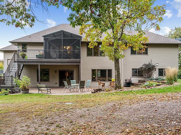 Looking for an executive rambler with acreage? Here it is! This beautiful home offers an open concept. As you walk in, the living room invites you with built ins, and a cozy fireplace. Step into the kitchen and enjoy! Sit at the island and socialize, or enjoy the dining area that offers room for a formal dining room table. Enjoy the outdoor space without mosquitoes bothering you, or just feel the breeze come in as you gather around the table. Like to entertain? This finished basement is sure to be a hit when hosting any event. Great room with fireplace, recreational area, and BAR! Walk out to a huge patio with room for a hot tub and entertaining. Additional features: 33x24 heated detached garage, and sprinkler system.
