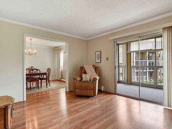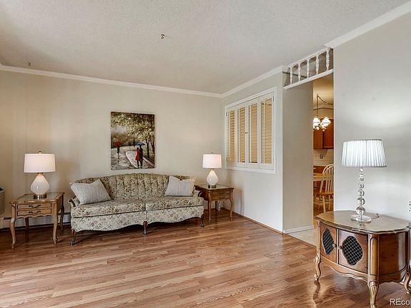 Nestled in a private cul de sac, building 205 is a special place to live. Residence 210 is a lovely 2 BR/2BA condo with custom touches making it unique and cozy. The hallways, great room and dining have updated gleaming wood floors. Second BR currently serves as formal dining with glass french doors and stunning crystal chandelier however it's easily converted if you wish. Master BR is quite large with sizeable windows offering marvelous light. There is a spacious walk in closet and luxurious, secluded full bath with glass enclosed tub/shower. To top it all off you'll be delighted with the large office/storage area, complete with a built in desk and cabinets. Immaculate and lovingly cared for with stunning views from the enclosed Lani of one of the many fountain featured ponds found throughout the grounds, walking paths and 9th fairway. Laundry is conveniently located just a few steps down the hall, additional private storage is on the third floor and the prime garage space is complete with a cowboy storage locker. Condo is move-in ready and priced to sell. Heather Gardens is an amazing community with amenities that fulfill everyone's wants and needs. The newer clubhouse is chick, modern and tastefully contemporary with lovely lobby, indoor & outdoor pools, patio area, hot tub, locker rooms, showers, fitness center & classes, movie nights, wood working shop, tennis courts, arts & crafts and an abundance of other activities, trips and clubs. Rendezvous Restaurant is now open for indoor dining and take out and the 9 hole executive golf course is one of the prettiest in the area. You are only minutes from Light Rail, bus line, shopping and restaurants. The entire community is lifestyle rich and so much more than a place to call home.