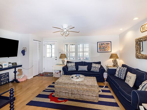 Wonderful opportunity! This Village Green Quad is upgraded, well-maintained and ideally located (the street facing unit). Just 7 short blocks from the beaches and close to the Marina business district. Highlights of unit include recently painted interior, plantation shutters on windows, and newer appliances (washer, dryer, refrigerator, dishwasher). This special Quad features screened, enclosed front porch including a hideaway screen door on the front entry door. Outside has been professionally landscaped including irrigation system, paver walkway, ample fenced-in patio area, plus outdoor shower with 2 heads and an expansive shed which can hold a golf cart. The crawlspace has been encapsulated. This unit is tastefully furnished, and some furnishings are negotiable, which would make the transition easy!
