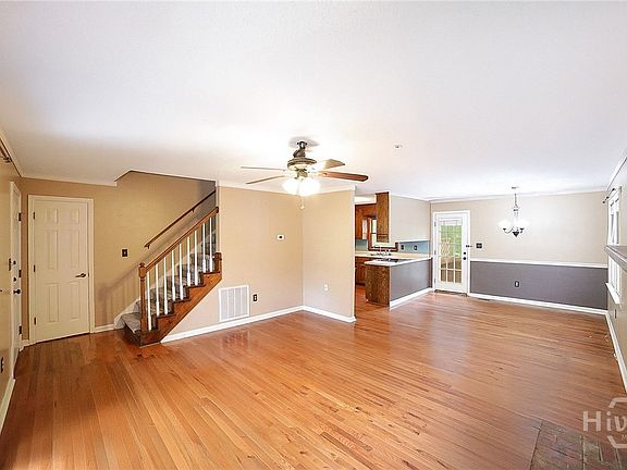 Location is key, and this classic 3 bedroom, 2 bath cottage offers exceptional access to everything Watkinsville has to offer. Perfectly positioned near Butler’s Crossing, Hog Mountain Road, Hwy 441, and within the highly regarded Oconee County School District, this home delivers the ideal combination of small-town charm and everyday convenience. Surrounded by mature shade trees and lined with a classic picket fence, this traditionally styled home sets the stage for a warm, inviting atmosphere. Inside, you'll find a thoughtfully designed open floor plan that maximizes space and encourages effortless flow between the main living areas—perfect for both relaxing and entertaining. The spacious living room features gleaming hardwood floors and a cozy masonry fireplace, creating a welcoming focal point during cooler months. Abundant natural light pours through large windows, complemented by blinds, decorative fixtures, and ceiling fans for added comfort and style. Adjacent to the living area, the dining space easily accommodates larger gatherings, while the well-equipped kitchen offers function and charm. Designed in a horseshoe layout, the kitchen is flanked by ample counter space and solid wood cabinetry, features a pantry, and stainless steel appliances—ideal for everyday cooking or hosting. The main-level primary bedroom features new carpet, a closet with shelving, and a private access en-suite access to the full bath. Upstairs, two secondary bedrooms mirror one another with plush new carpet, ceiling fans, floored attic storage, and convenient access to the shared hall bath. The tranquil rear setting provides all the feels of a mountain escape with a creek bordering the rear of the property. To enjoy this peaceful serenity the amenities include a rear deck and lower level courtyard patio complete with garden beds. this outdoor space offers a true sense of retreat while still providing an in-town location. Offering comfort, convenience, and a tranquil setting, this Watkinsville gem is an opportunity you won't want to miss.