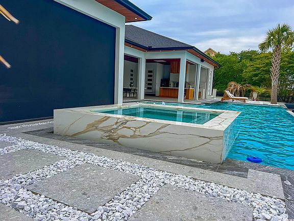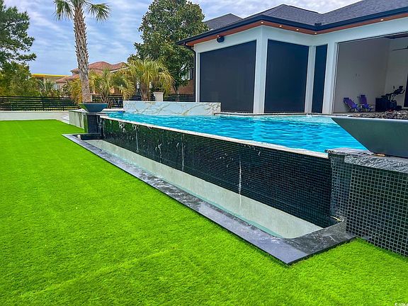 Rare opportunity to own a very unique property on the Intercostal Waterway in Plantation Point with no HOA, in the heart of Myrtle Beach! This gorgeous home features 4 suites all in one floor, all built in furniture, private gate, stucco wall around the entire property. European kitchen cabinets, gas stove, commercial grade vent, ice maker, built in coffee maker, wet bar, enormous walk in pantry with drawers and a sink with water filtration. Brazilian Porcelain tile 48x48 throughout the entire house plus some walls, spray foam insulation throuhgout, outdoor walls are 2/6, HVAC in both back porches including motorized retractable screens that keeps 90% of the temperature. Outdoor kitchen, outdoor gas line for a future fireplace and a fire pit next to the pool. Heated flooring in the master bathrooms, all shelvings are prep for LED lighting. Pool is 52ft long, includes a 9 set jacuzzi, lights, and heated pool. Dock with elevator for a boat and two jet ski. Built in sound system, security camera, and intercom. This home truly is one of a kind!