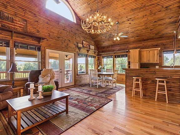 Spectacular Chalet custom built and hand crafted in 2015, situated on just over 41 acres, with your own private stocked pond. This property has it all! Custom wood wrapped walls, hickory cabinets, cathedral ceiling and a finished walk out basement. When entering the driveway you will find a large 50 by 30 barn with full basement, newer hand cut plank flooring and dedicated electric service. As you continue up the driveway take a minute to appreciate the sweeping and serene views. Upon entering the oversized wrap around porch you can see all this property has to offer. The open concept living area has a cozy living room with a dedicated dining space and an amazing kitchen that offers a breakfast bar, stainless steal appliance suite and corian counters. The first floor primary suite is the perfect way to relax, with an attached full bathroom and spacious walk in closet. The walkout basement has a dedicated storage area, full bathroom and laundry space. There is also a spacious living area that has glass french doors that lead you outside. But wait, there is more. The perfect spot for a home office or work space is the 16 by 20 outbuilding right in your backyard!
