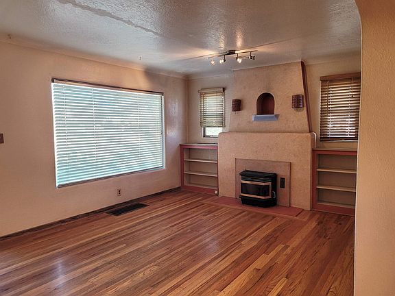 Please come see if this bright Unique 2 Bedroom 1 bath downtown Santa Fe Style Charmer with high desert sage, oak and lavender is for you. Walking into a different time with hardwood floors, kiva surround for the pellet stove, and entering into the kitchen you have saltillo tile at your feet, along with a beautiful custom stone inlaid mandala. The counter top is saltillo tile with custom inlaid stone and Santa Fe decorative tile as back splash and trim through out the kitchen and down to the basement. You will find the bathroom has saltillo tile as well, along with inlaid stone in the threshold and decorative tile scattered throughout shower. As you go out the back door you find the patio extending all the way to the back gate with red flag stone to finish this private entertainment area. This home has been a rental. This is an extra large lot, room for ADU unit. Price is reduced to allow for deferred maintenance/ replacement of windows and updating of electrical and misc. items.