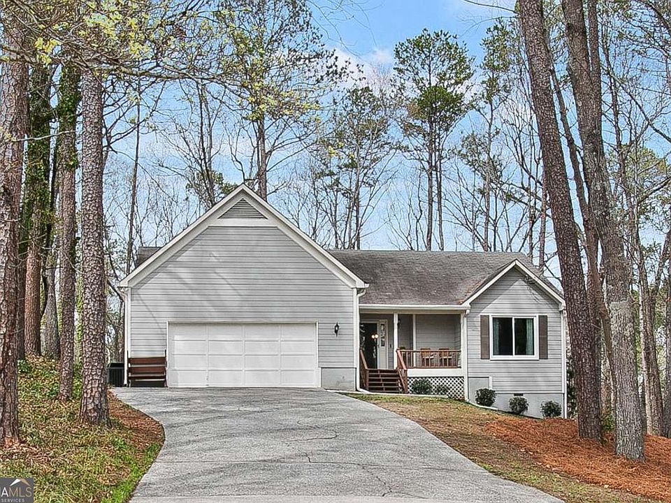 Conveniently located near schools and Downtown Woodstock entertainment, this delightful three-bedroom, two and half bath home offers the perfect blend of comfort and style. The inviting open floorplan features a spacious living area with a cozy gas fireplace and cathedral ceilings, creating a bright and airy atmosphere. The dining room off the kitchen provides additional entertainment space. The oversized primary suite is a true retreat, complete with a large walk-in closet ,and a stylish trey ceiling. The primary ensuite features double vanities, a relaxing garden tub, and a beautifully tiled walk-in shower. A wooded outdoor space provides low yard maintenance and shade for the front porch and back deck. This well loved home has had great care with additional insulation, gutter guards, encapsulated crawl space and a concrete sidewalk that goes around to the back of the home. Also new hot water heater in 2021, new refrigerator 2024, new designer sinks in the primary bathroom, new shower doors and new windows and doors through out the home. Nestled on a semi-private lot, this updated home offers charm and modern convenience. Schedule your showing today to fully appreciate all it has to offer!