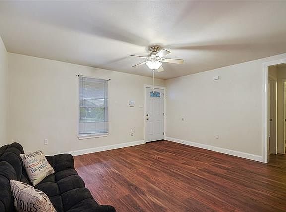 A DEFINITE MUST SEE...charming home in excellent condition! Great floor plan with large master bedroom downstairs and two spacious bedrooms upstairs. Wood floors throughout...carpet on stairs only. Plenty of closet space. Covered front porch. Fenced backyard. Large driveway. Includes washer & dryer. LOW flood insurance.