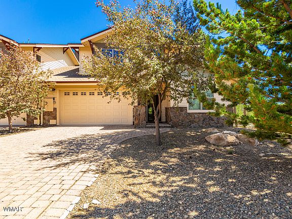 Absolutely immaculate and gorgeous mountain view townhome located in the highly sought-after Flagstaff subdivision of Pine Knoll Village. While located just minutes away from NAU and the shops at Aspen Place, this home has all the privacy with no rear neighbors and backs to a greenbelt, and views of the ponderosas & mountains that are unmatched. This open and bright home features 3 bedrooms, 2.5 bathrooms, 2 car garage and CENTRAL A/C! As you enter, you will find soaring 13 foot ceilings in kitchen, dining and living areas, tile flooring throughout and an open concept perfect for entertaining around the living room rock surround fireplace. The kitchen boasts granite countertops with a large island and breakfast bar, gas range, stainless steel appliances and pantry. The large primary... suite has his & her closets, as well as an en-suite bathroom with dual vanities, shower AND tub and private toilet room. The additional bedrooms and bathrooms have been updated as well. Don't forget to check out the powder room and laundry room before heading outside to the backyard where you can enjoy the low maintenance yard from the covered patio! Schedule your showing today!