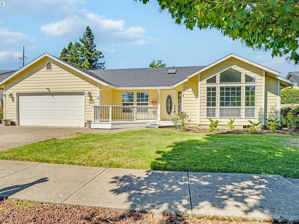 Brand new roof on property!! Spread out in the spacious, light filled home. Flexible Floor Plan with Bonus Room, now sewing room, that could be dining room, family room or a 4th bedroom. Formal Living Room with Vaulted Ceiling and Ceiling Fans. Kitchen and Nook that look out over the spacious backyard. Kitchen with granite tile counters and storage. Sliding door to backyard patio and fenced yard with Tool Shed. Easy Access to Hwy 99W. Great Views of the Coast Range from the Backyard.
