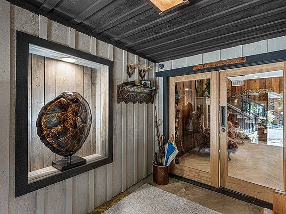 This contemporary mountain home is nestled in the middle of 29+ acres of prime mountain land to ensure ultimate privacy. When you enter the foyer, you notice lovely flooring and a massive stone fireplace that is the space's focal point. The kitchen is convenient for entertaining family and friends. The formal dining room has floor-to-ceiling windows to view the water features in the backyard. The media room allows you to revisit the entryway and find the primary bedroom and office. The main-level primary bedroom features another stone fireplace and setting area. The attached bath features travertine floors, a glass-enclosed shower, and a massive walk-in closet. Adjacent to the garage is a home gym and a separate art studio. The second level has an entryway to find the second primary bedroom and bath. Another guest bedroom is located off the upper-level sitting room with an en-suite bath. The resort-style backyard and stone hot tub will entice anyone to stay for a lifetime. The garden pavilion, kitchen, dining area, and small greenhouse will be found in the backyard. The parcel also has a collection of small barns, garages, and Rv pad with electrical and water hookups.
