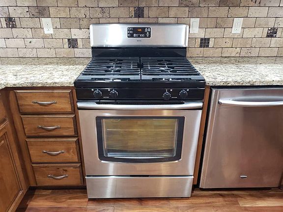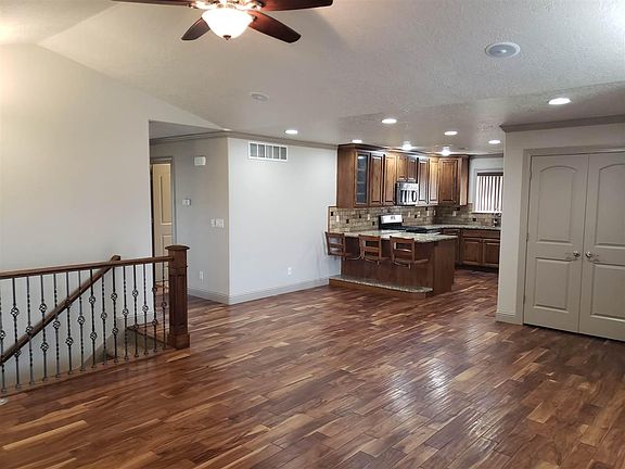 IMMACULATE 5 bedroom, 3 full bath home with no backyard neighbors! Crown molding throughout, including the garage and mechanical room. Granite counter tops, soft close cabinet drawers, stainless steel gas stove, new carpet, touched up paint, main level master with dual sinks and separate tub and shower, sound system throughout home and patio, gas fireplace, central vac, automatic sprinkler system. Garage is complete with paint and crown molding. Too many amenities to list! Quiet neighborhood, green space and common area.