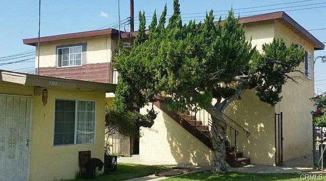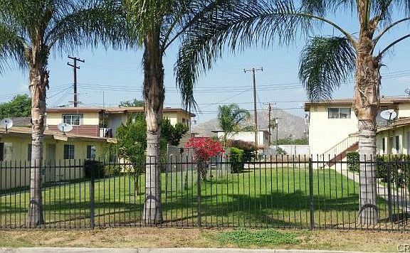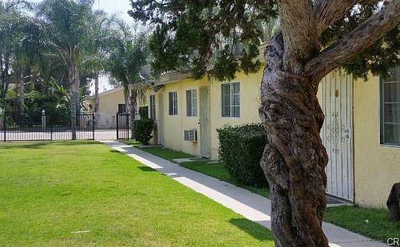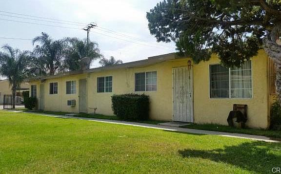 Well Kept 4 unit complex. Large grass area trimmed with Queen Palm Trees. We welcome INVESTORS. 3 Units have a one car detached garage. The complex also has a laundry room that was built out of one the garage spaces. Drive by and take a look.
