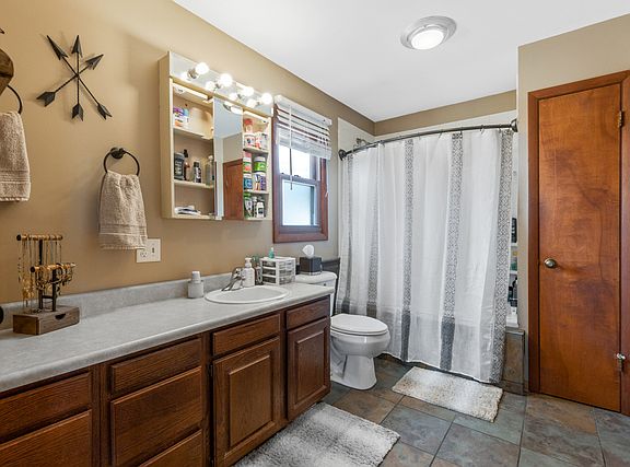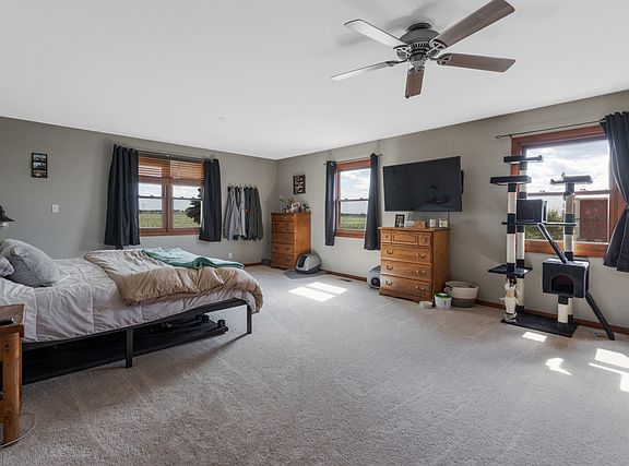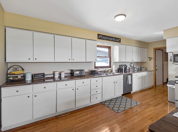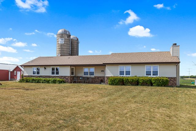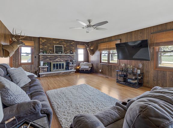 Don't miss this opportunity in Huntley ~ 5 acres Includes a Ranch home with attached 2.5 Car Garage, Plus three Huge Outbuildings and Solar Power Panels to reduce electric bills!! the buildings include a 92x49 Morton Building with Concrete Floor offers Heated Shop, Hoist & a 14' Overhead Door, 100x30 Morton Building w/ Concrete Floor, Electric & 8.6 Overhead Door, Plus 82x28 Cleary Building! The home offers 2 Bedrooms, an Office/Optional 3rd Bedroom, 2 Bathrooms and a Partial Basement! Features include Hardwood Floors, a large Eat In-Kitchen with Stainless Appliances, Large Family Rm with Fireplace and a Huge Master Bedroom!