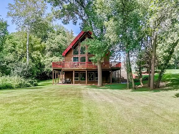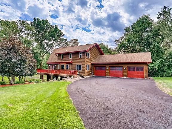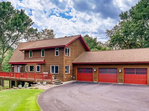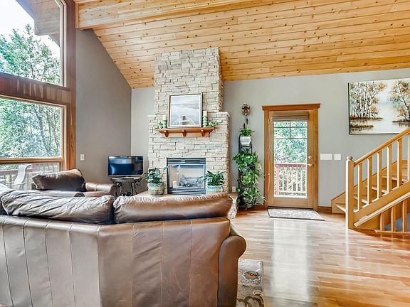 Gorgeous custom built home with Lake Orono views!! Private setting on 1+ acre lot. Towering great room ceiling with huge windows overlooking lake, gourmet kitchen, 2 beautiful fireplaces and main floor laundry. Upper level loft and master suite w/ walk-in closet, private en-suite w/ whirlpool tub & shower. Finished walk-out lower level w/ large family room, LVP flooring, and additional bedroom, and bath. Wrap around deck and covered lower level patio. 3 car garage. Close downtown Elk River and Hwy 10.